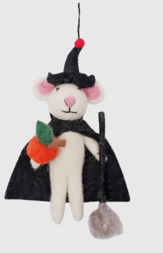 Addurn perffaith ar gyfer Calan Gaeaf. Gwrach llygoden fach gyda’i phwmpen a’i hysgub, wedi’i gwneud a llaw.