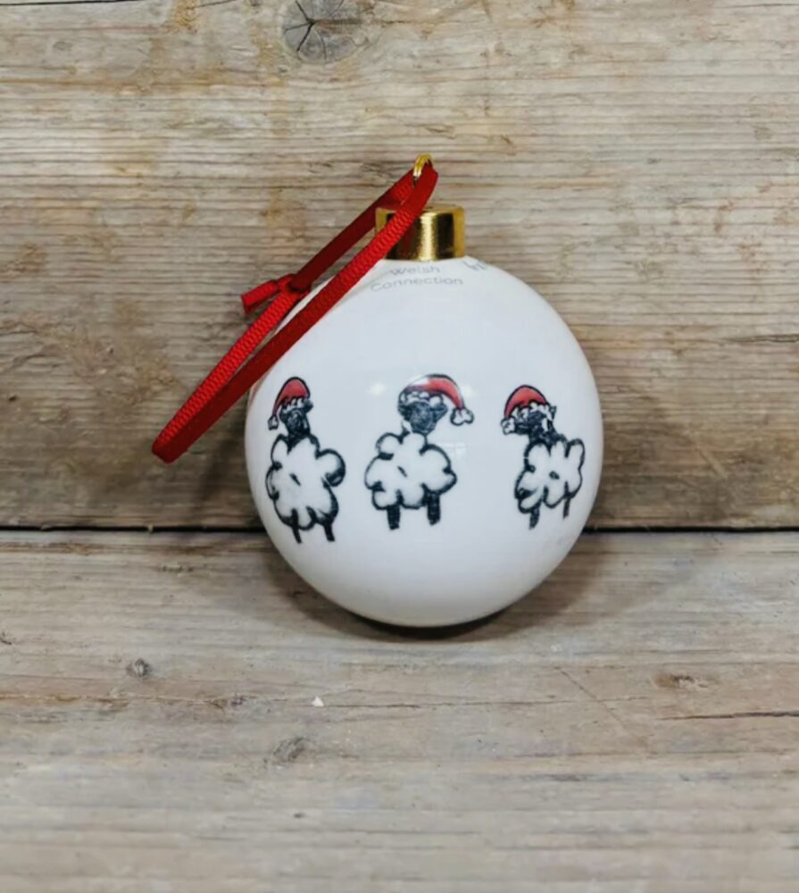 Addurn tjeina hyfryd gyda cynllun defaid, wedi’i wneud yng Nghymru
