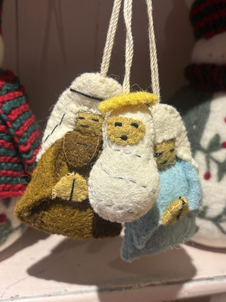 addurniadau ffelt traddodiadol hyfryd wedi’i gwneud a llaw o Mair, Joseph a’r baban Iesu. Perffaith fel anrheg cofiadwy neu ar gyfer y goeden