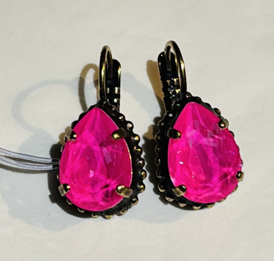 Clust dlysau mewn lliw pinc neon trawiadol , Wedi’i fframio ac yn hongian ar glip Ffrenig pres wedi’i heneiddio, ac yn ddi nicl..