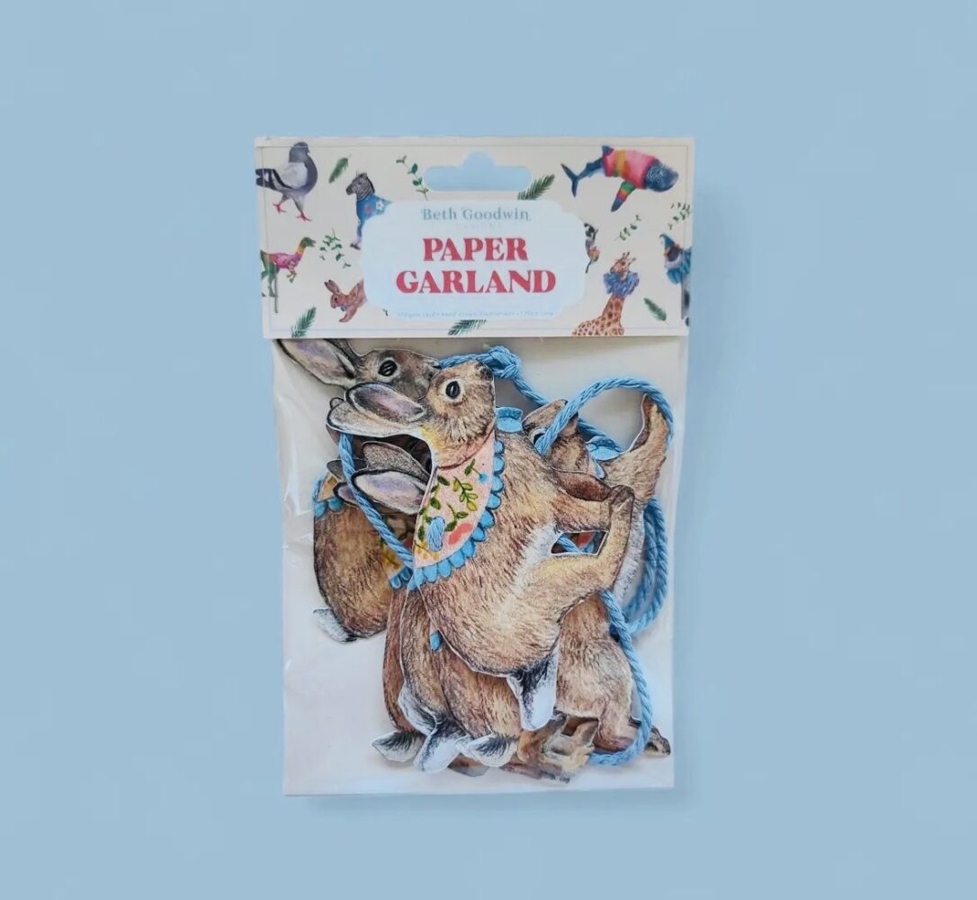 garlant bach hyfryd o wningod cardfwrdd wedi’i arlunio a llaw. Perffaith ar gyfer y Pasg ac addurn del gydol y flwyddyn