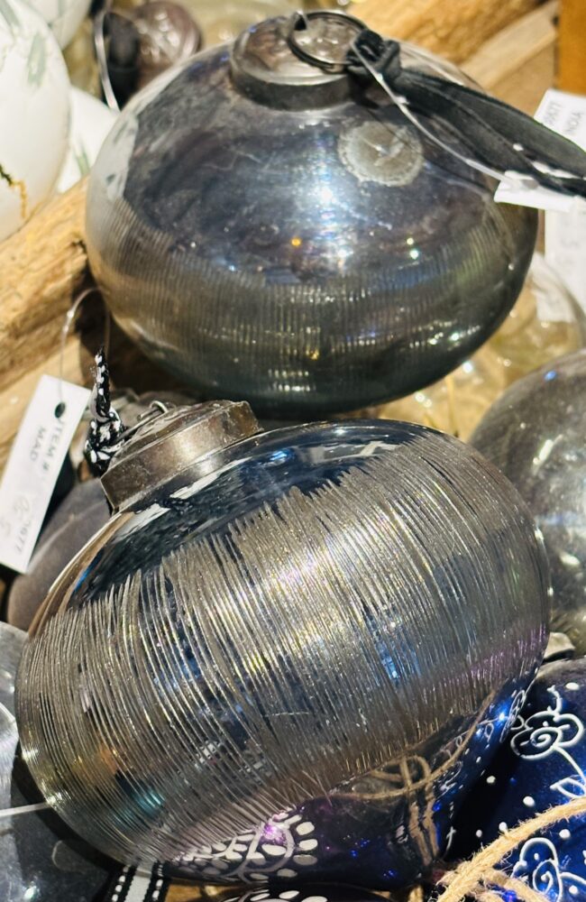 Beautiful smokey glass large bauble with etched design.